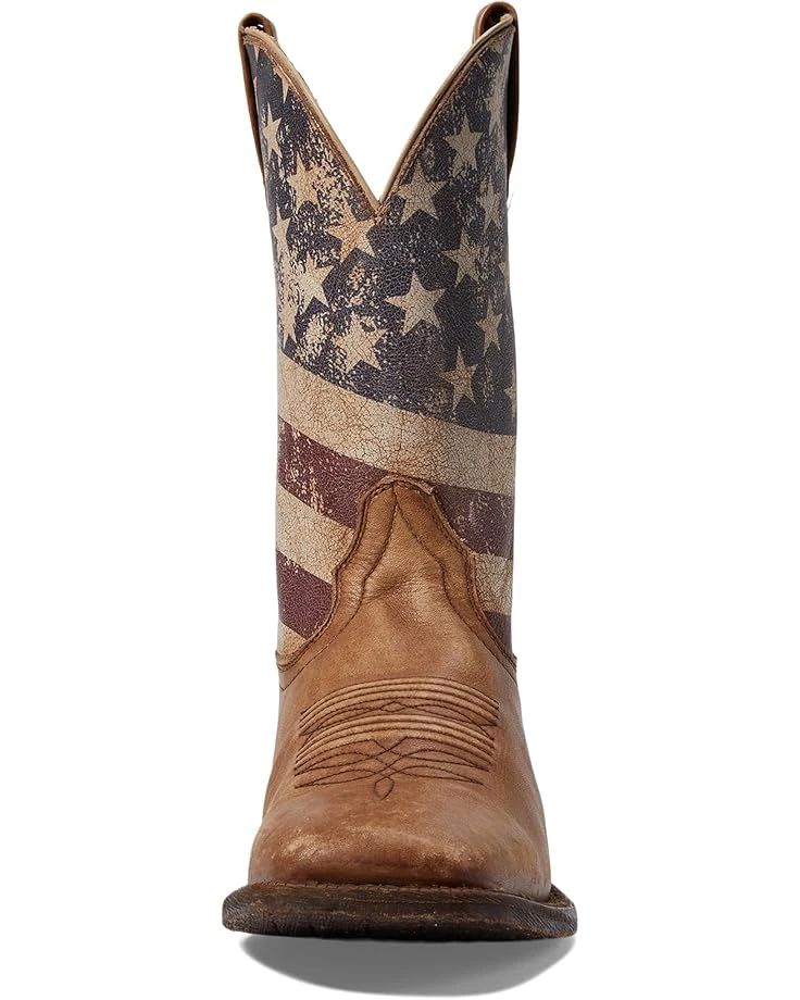 - The ruggedly handsome style of the Ariat® Circuit Proud cowboy boots feature a classic flag printed on the shaft for a truly patriotic look.