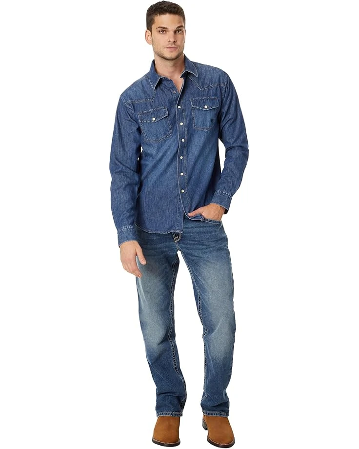 - The Ariat® Denim Retro Fit Shirt has a slim fit design through the chest and waist. It features greater arm mobility, collared neckline, and long sleeves with three buttoned cuffs. Attain it to grab everyone’s attention at the party.