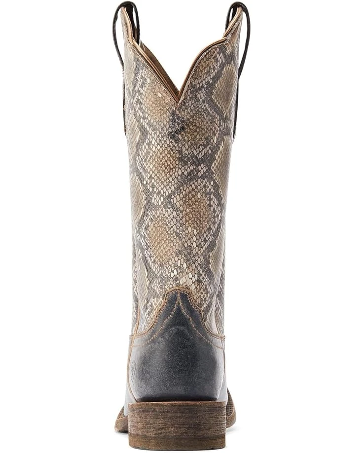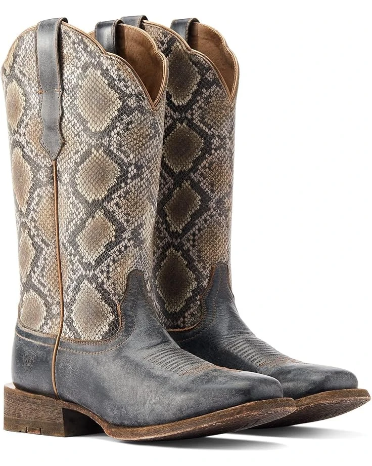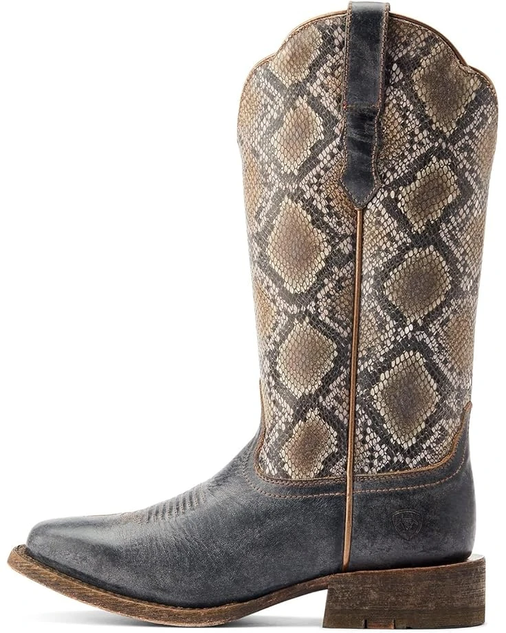 - Featuring an impressive floral print shaft, the Ariat® Frontier Farrah Western Boots offer a versatile and elegant look. This square toe footwear is made with ATS® technology that provides ample support and TekStep offers toe-to-heel cushioning comfort.