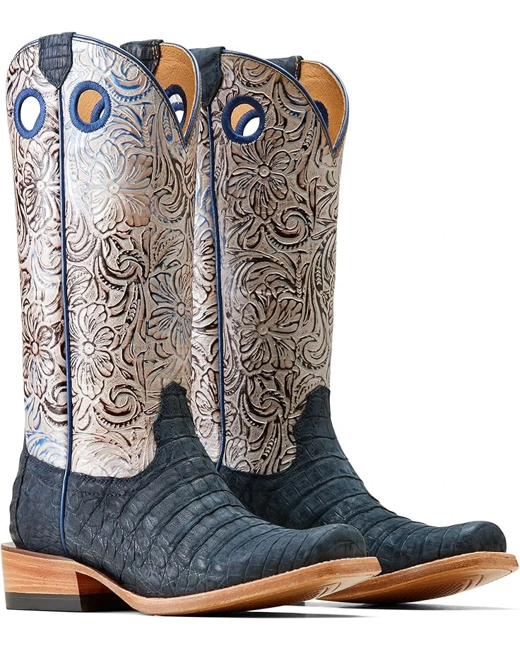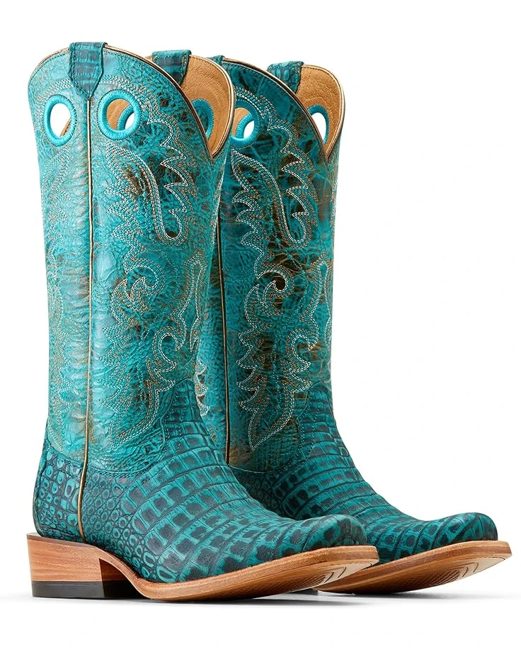 - Slay the style game by pairing the Ariat® Futurity Boon Western Boots with your most favorite outfits. The boots come with a leather upper, leather lining and comfortable footbed. These feature a squared toe shape, intricate detailing on the shaft in contrasting color, and a block heel, all designed for elevated style.