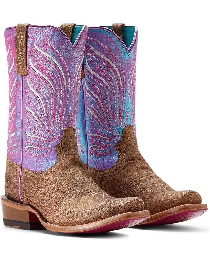 - Add a pop of color to your western wear in the Ariat® Futurity Dash Western Boots. These pull-on style boots come in a snip toe silhouette, three-row stitch pattern with embroidery, pull tabs at sides for easy on and off access, and a block heel.