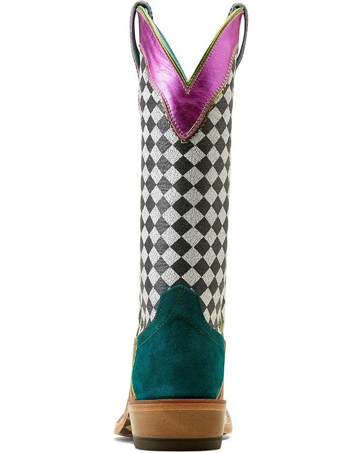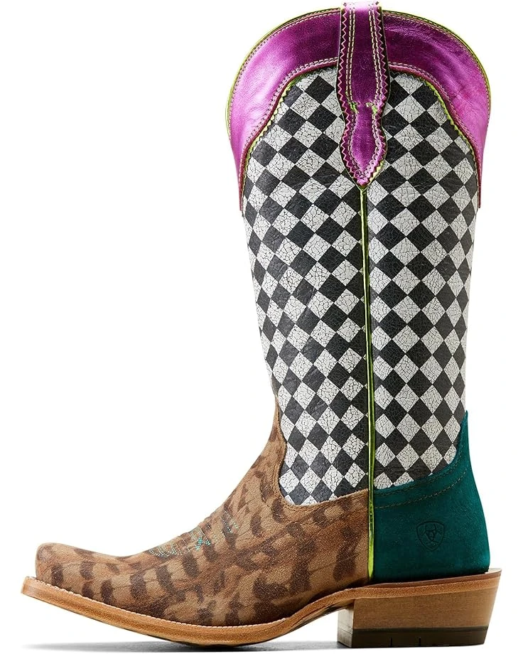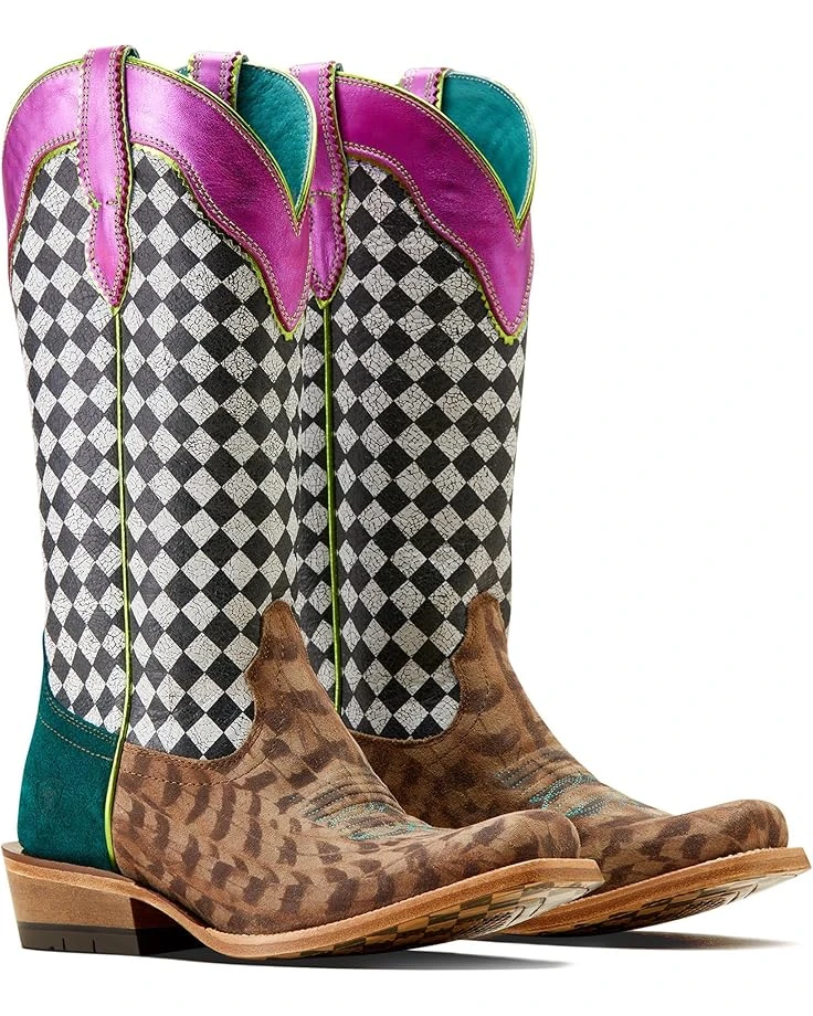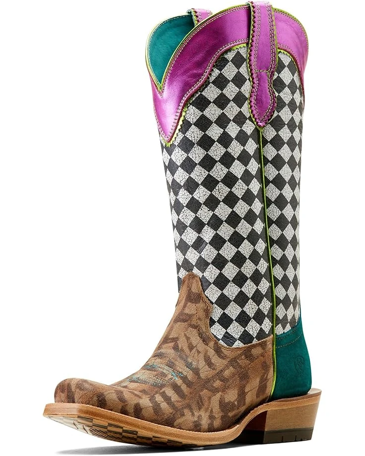 - Hit the city streets in style wearing Ariat® Futurity Hashtag Western Boots. The pull-on footwear features a checkered print shaft with side pull tabs for easy wear. With a square toe silhouette, the pair has leather upper, lining, footbed and midsole for a premium feel.