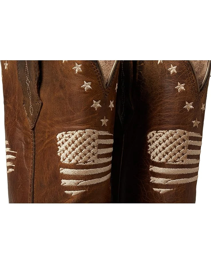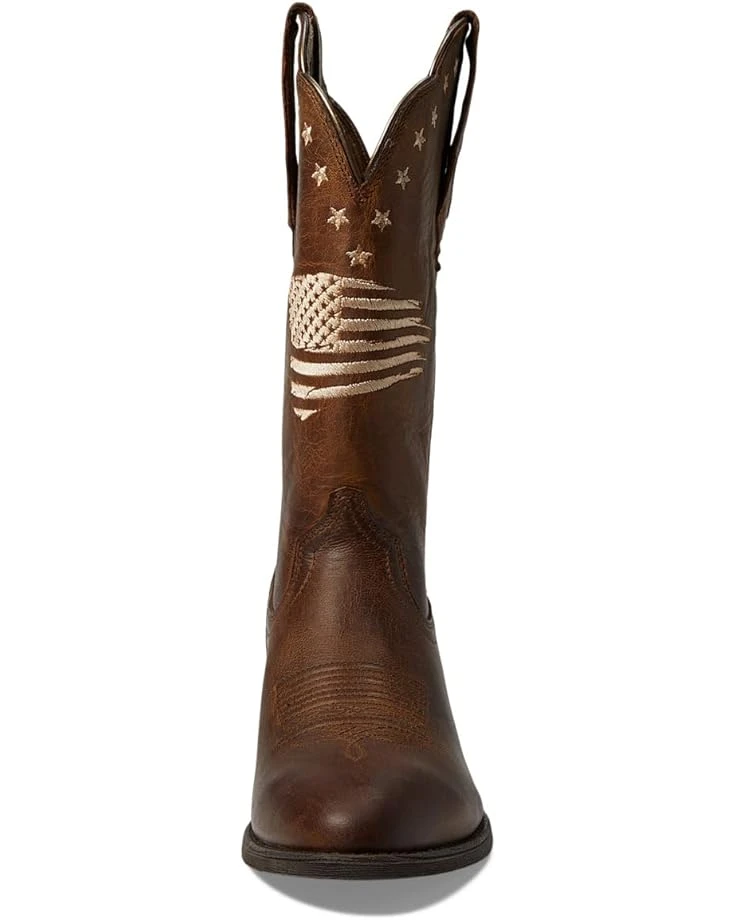 These are great boots and very comfy. They’re obviously a subtle patriotic boot due to no red white and blue, and mostly dark brown. But I really like them. I have an Ariat older pair that is with red tan and blue, from years ago, with a more “interesting cut out design, but they’ve always been VERY stiff and uncomfortable. They’ll now go in the donation bag!