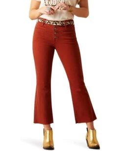 - Step into a world of denim elegance with the Ariat® High-Rise Jazmine Flare in Burgundy. These jeans are the epitome of chic and comfort, boasting a high-rise waistline that adds a touch of modern style. The fray hemline creates a unique and trendy look. The flare-leg design and ankle-length cut create a timeless and flattering silhouette.