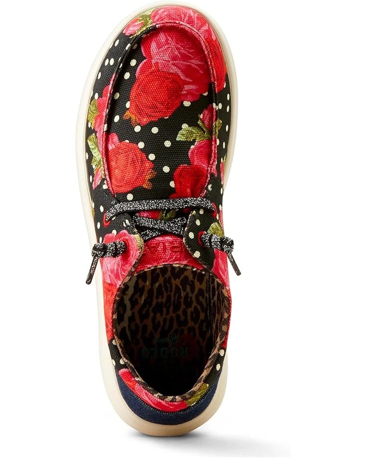 - Featuring a colorful all-over print, the Ariat® Hilo Rodeo Quincy shoes add a vibrant touch to your outfits. The leather midsole of these sneakers offers added comfort and durability while the easy no-tie laces ensure a perfect fit. Super comfortable and ultra-cushioned, these printed shoes are perfect to pair with different outfits and styles.