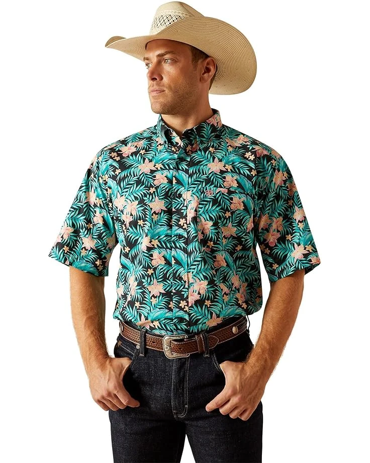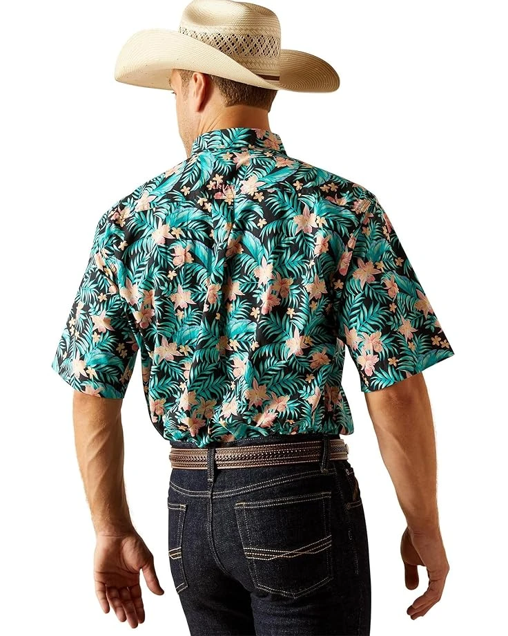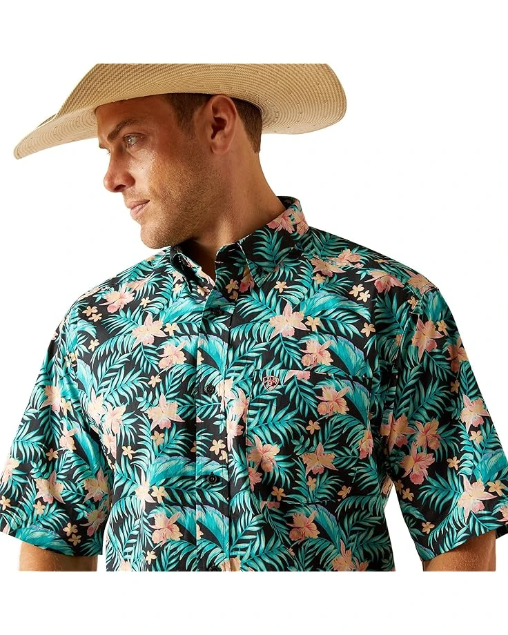 - Add a hint of style to your look wearing Ariat® Jillian Classic Fit Shirt, designed with an allover tropic leafy print. The shirt features a collared neck, short sleeves, full-button closure, one patch pocket on the left chest with embroidered logo, and shirttail hem.