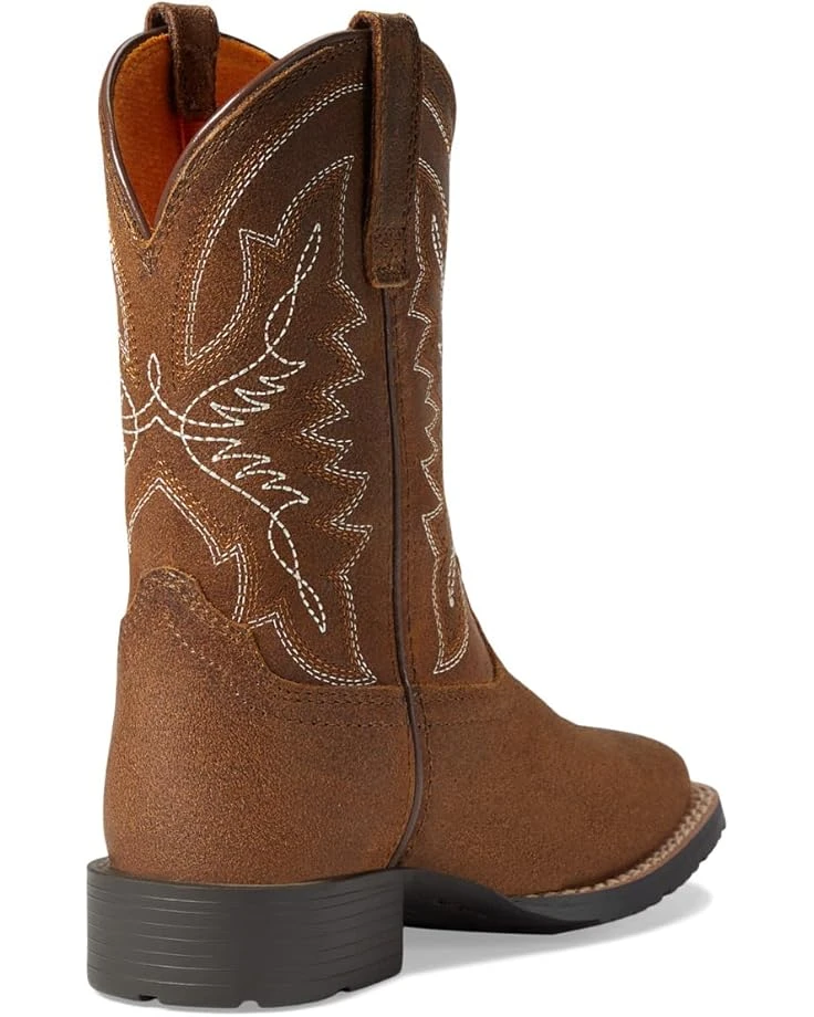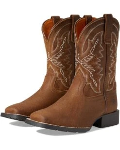 - From costume parties to everyday wear, the Ariat® Kids Hybrid Rancher (Little Kid/Big Kid) boots add an eye-catching appeal to your kid’s outfits. Stylish and comfy, the five-row stitch pattern offers style and durability. These Western booties come with a mesh lining that is soft on your kid’s feet, making them comfortable to wear for long hours. The pull tabs on the side offer easy wear. They feature a removable footbed for long-lasting wear. Get your kid ready for any event or party with these boots.
