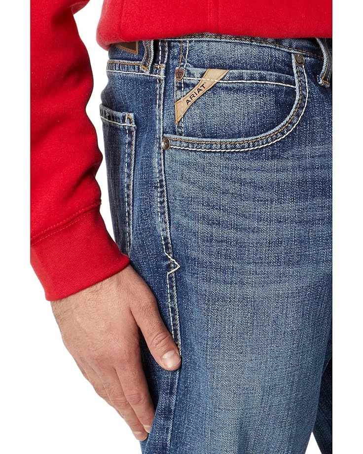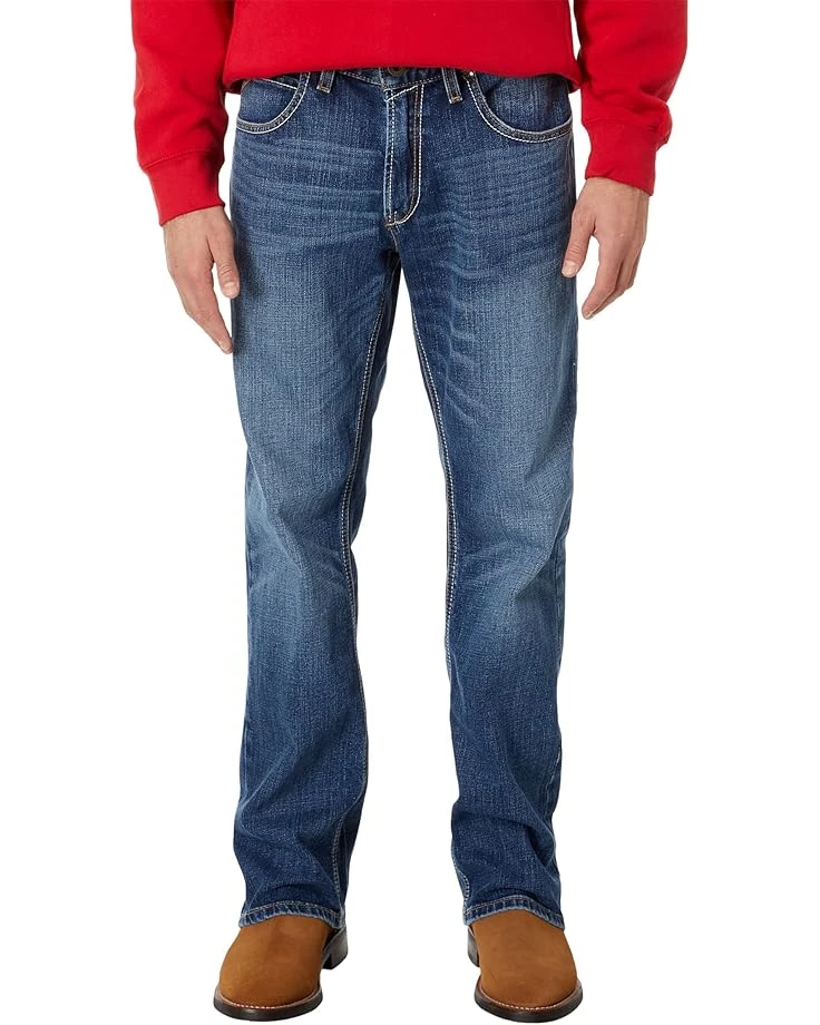 - Let your comfort speak for yourself by wearing Ariat® M5 Straight Stretch Madera Stackable Straight Leg Jeans. The jeans feature a waistband with loops and a zip-fly with a front button closure.