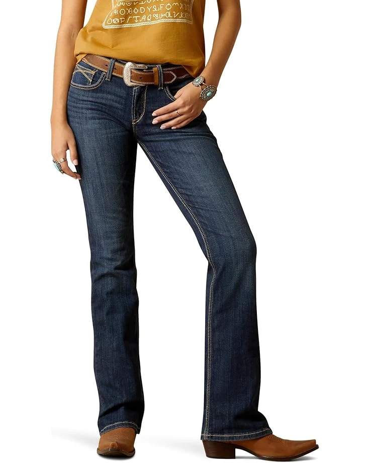 - The Ariat® PR Desiree Boot Cut jeans are the perfect choice to match your casual styles and trendy looks. These denim jeans are designed with a zip-fly, buttoned closure, and belt loops for added functionality. The cotton blend fabric in a medium wash of these pants offers all-day comfort and a better range of movement. Featuring a bootcut style with a mid-rise waist, these stylish jeans make a great addition to your wardrobe.