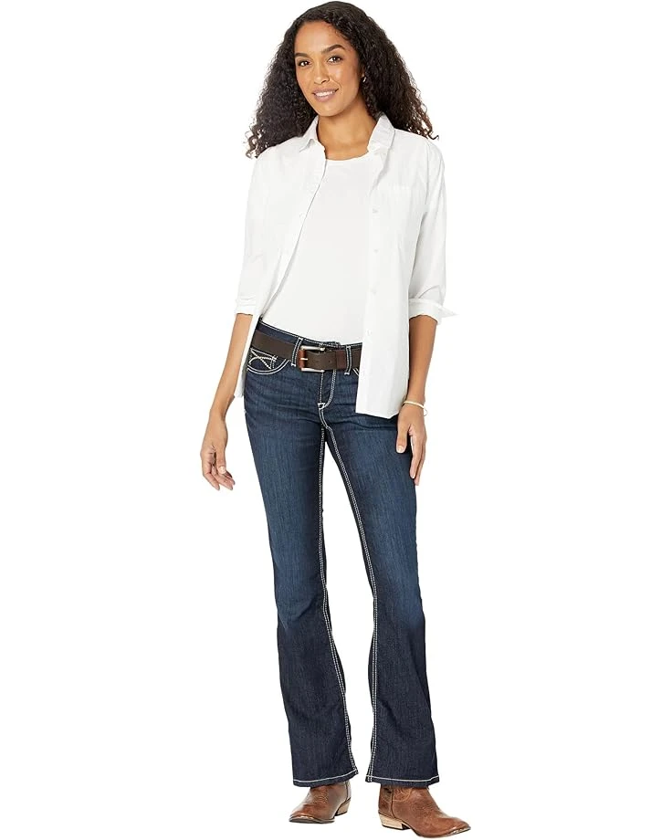 - Stay stylish in comfort with the Ariat® R.E.A.L. Perfect Rise Contessa Bootcut Jeans.