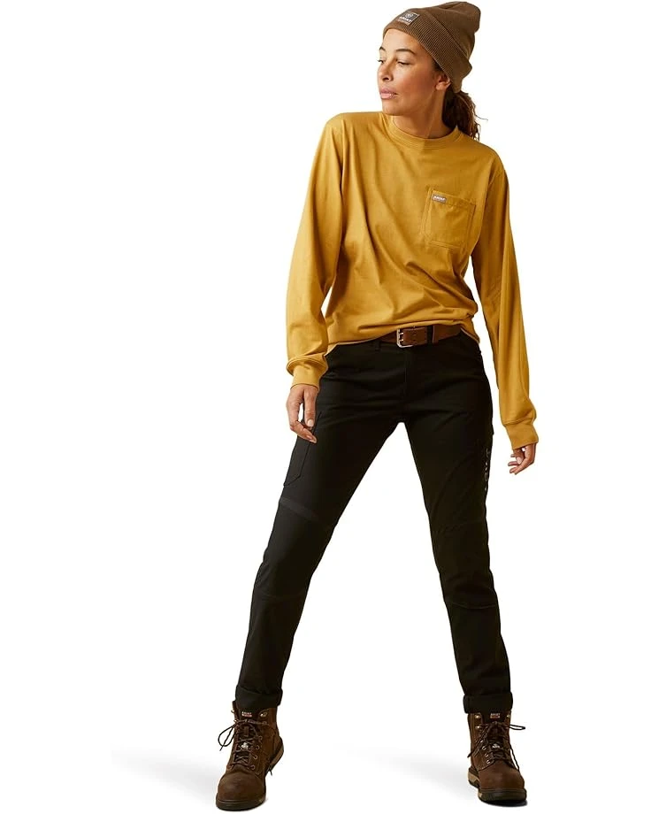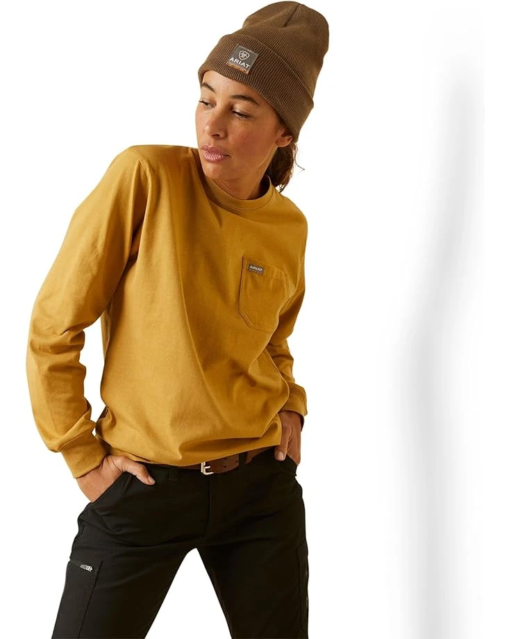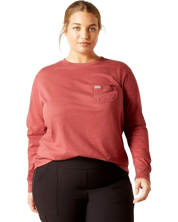 - Whether you are on or off the jobsite, maintain lasting comfort in the Ariat® Rebar Cotton Strong Arrow shirt. Featuring a chest pocket with a ribbed crew neckline, long sleeves with ribbed cuffs in a relaxed fit.