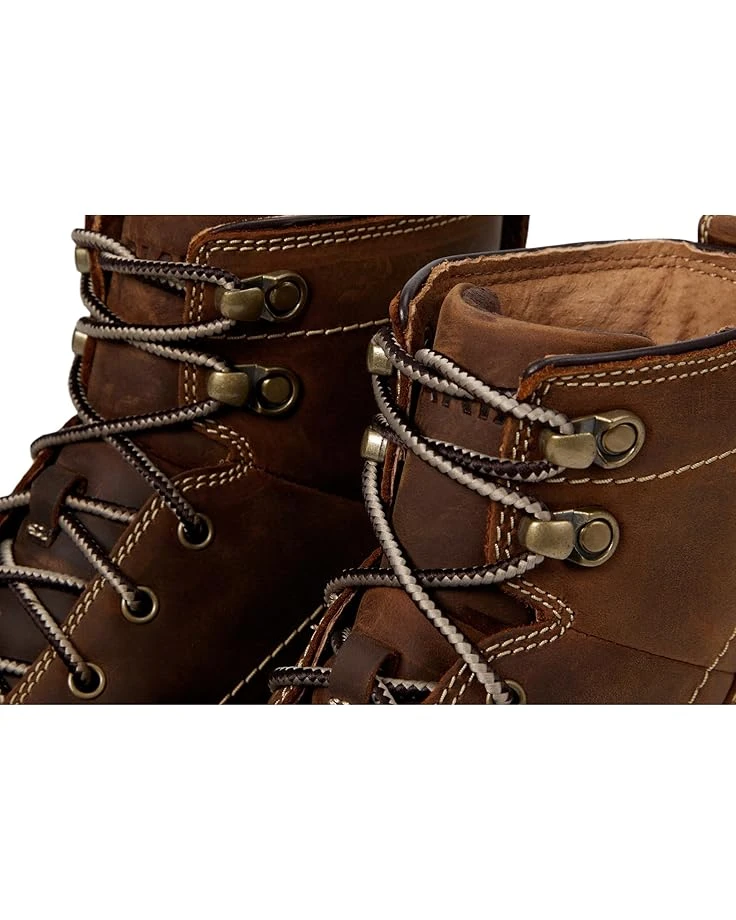 - Traditional lace-up style with fabric laces and sturdy metal eyelets and hooks for a secure fit.