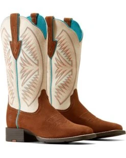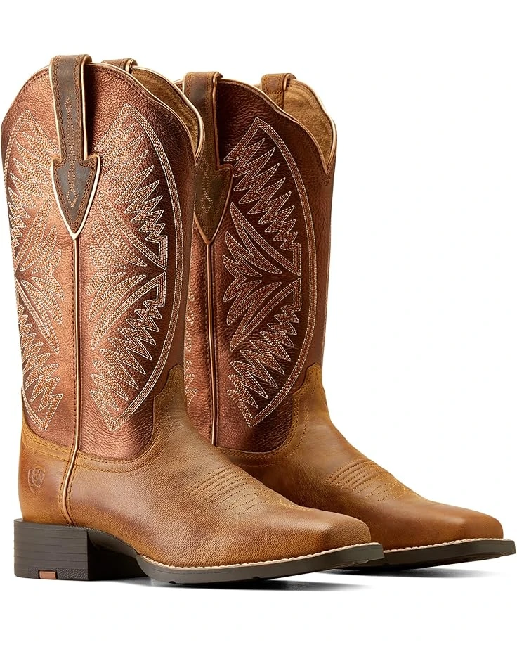- Discover the ultimate blend of luxury and comfort by choosing the Ariat® Round Up Ruidoso Western Boots! Crafted with a genuine leather upper and lining, these boots not only exude sophistication but also offer exceptional durability for years to come. The removable all-day cushioning insole provides superior support and cushioning from sunrise to sunset. Featuring a western stitching pattern and broad square toe design, these boots are the perfect addition to any cowgirl’s wardrobe.