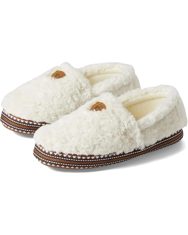 - Keep your little ones’ feet warm and cozy in the soft Ariat® Snuggle Slipper with a faux fur design.