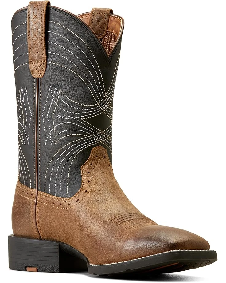 - Featuring a four-row stitch pattern for style and durability, the Ariat® Sport Wide Square Toe Western Boots are the perfect footwear to style up your outfits. The leather midsole of these boots makes them comfortable to wear all day. These leather boots feature ATS® technology that offers ergonomic support on uneven terrain. Designed to offer comfort, style, and durability, these Western boots make a great addition to your footwear collection.