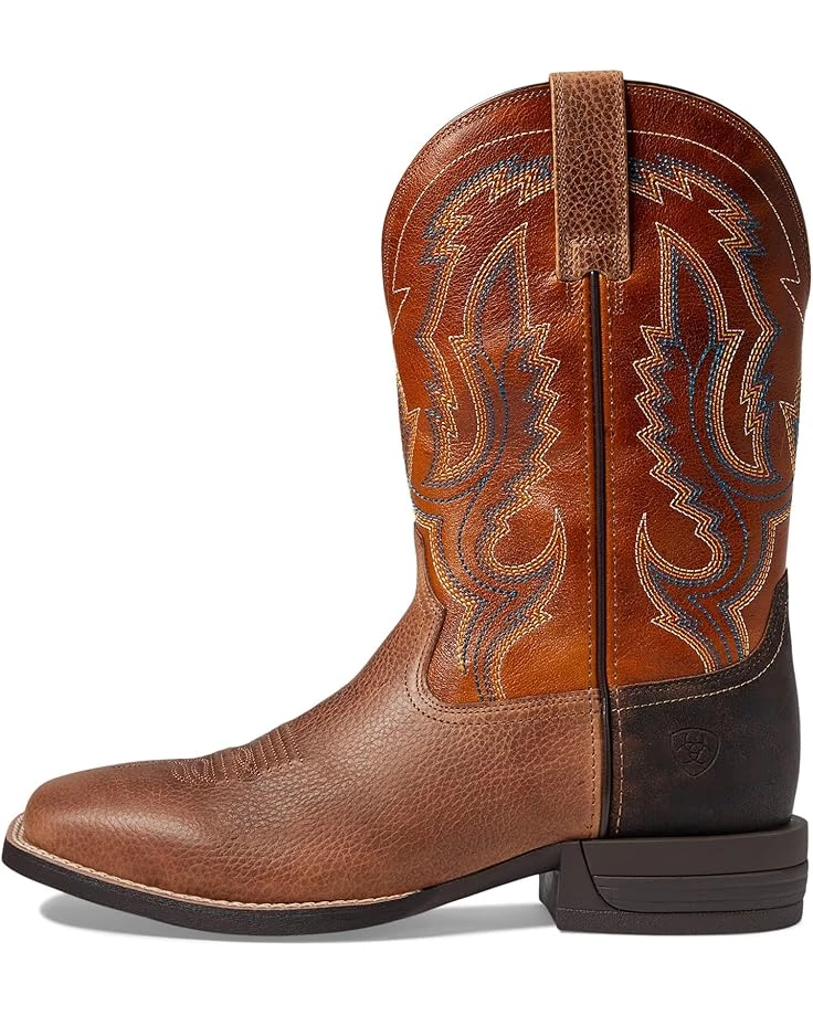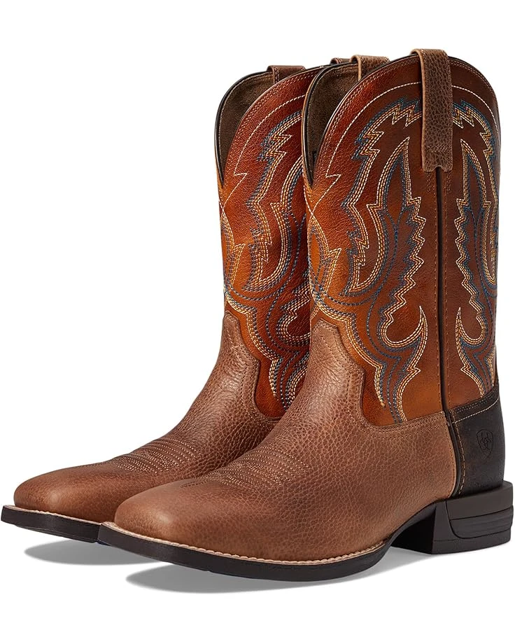 - Stride forward wearing the Ariat® Steadfast Western Boot featuring leather upper and lining. This pair of western boots feature pull-on style with pull tabs and square toe design for a cool look.