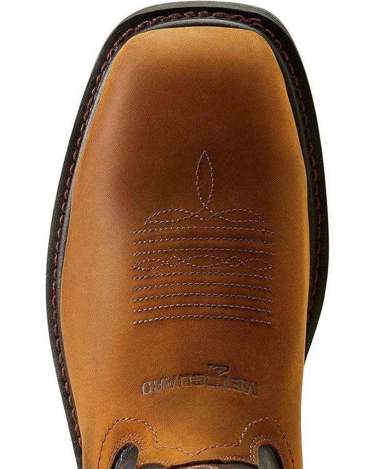 - Gear up. Get dirty. Ariat® WorkHog® MetGuard CSA: Protection that doesn’t hold you back. Crafted from premium full grain leather upper and lining, equipped with XRD® Metatarsal Guard, Goodyear welt, and puncture-resistant SWEN-FLEX® rubber insole. Stay stable with the ATS® Max technology, while the shock-absorbing EVA midsole and oil-resistant Duratread™ leather outsole keep you moving. CSA certified for toe, sole, and electric shock protection. Work smarter, work safer!